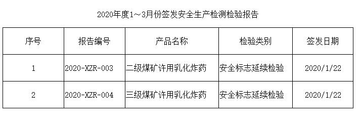 安全生產(chǎn)檢測(cè)檢驗(yàn)報(bào)告信息(2020年度1~3月份)