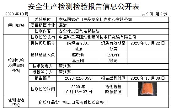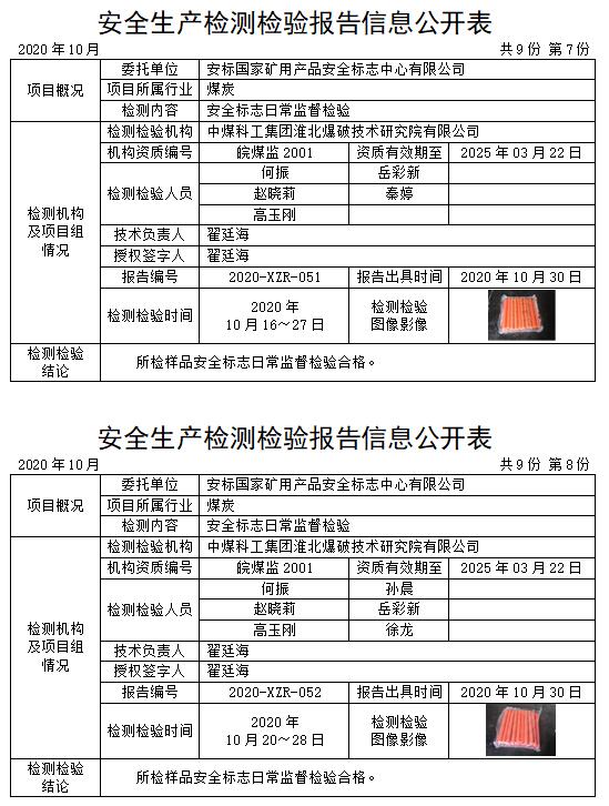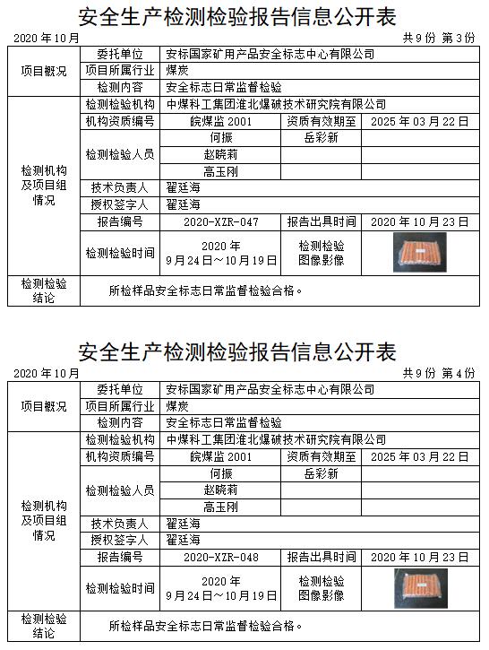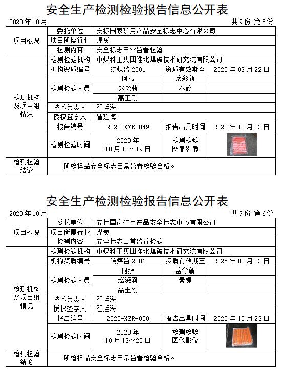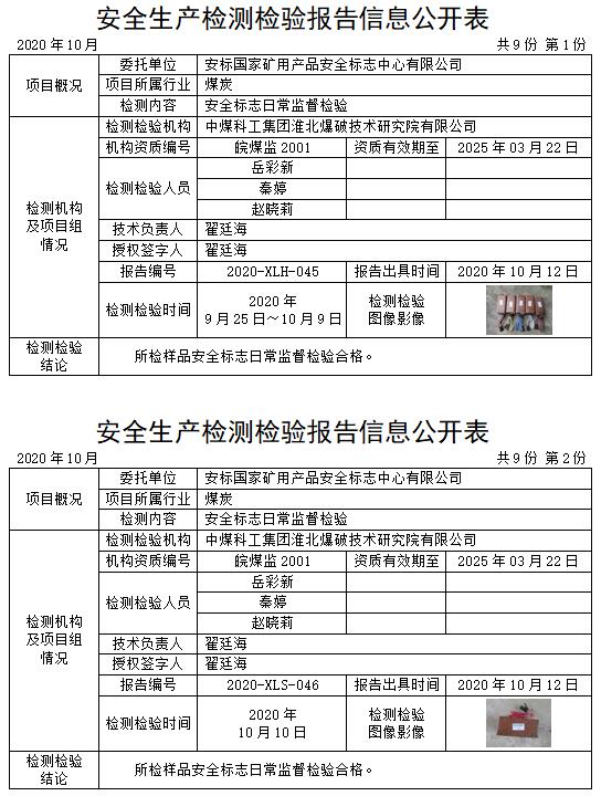 安全生產(chǎn)檢測(cè)檢驗(yàn)報(bào)告信息公開(kāi)表(2020年10月)