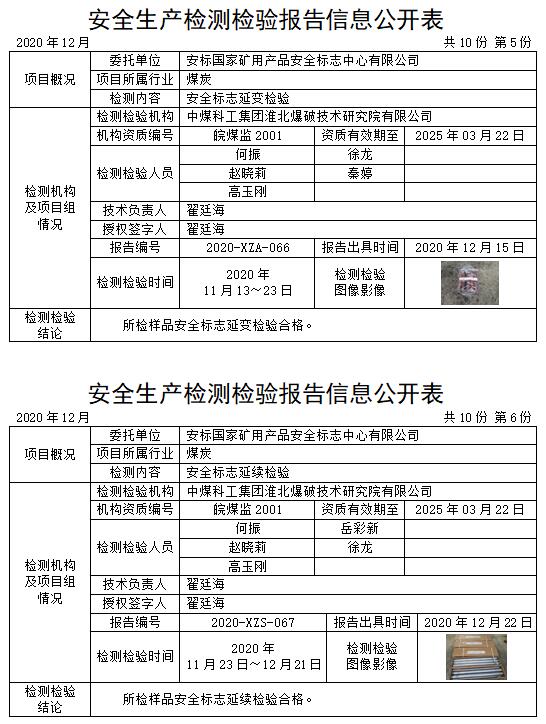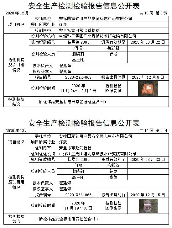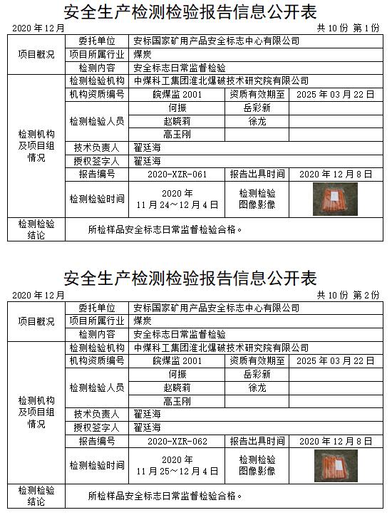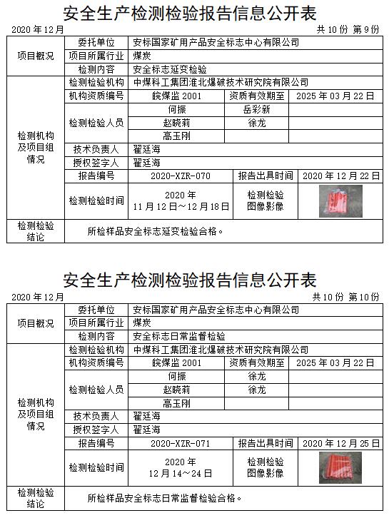 安全生產(chǎn)檢測(cè)檢驗(yàn)報(bào)告信息公開(kāi)表(2020年12月)