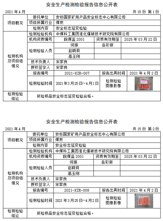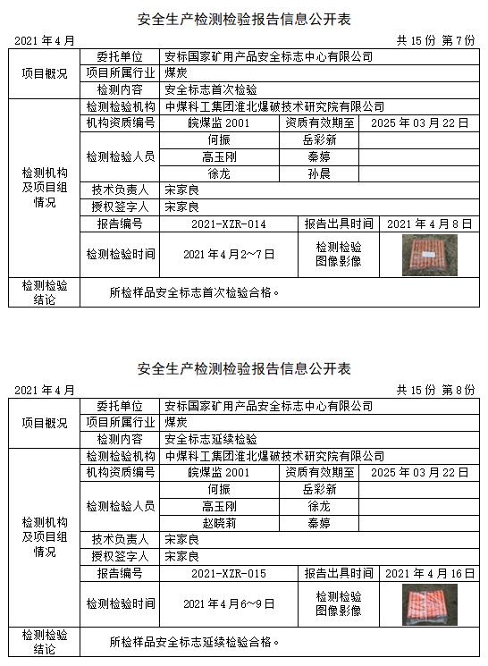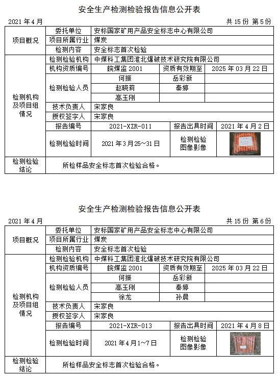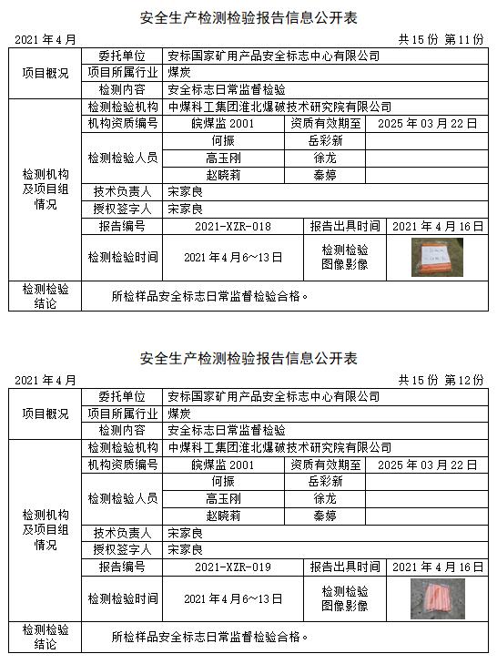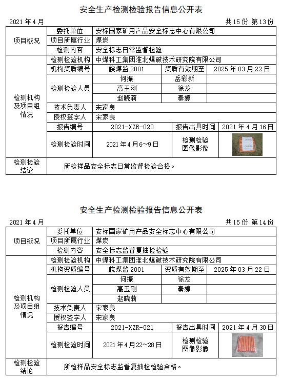 安全生產(chǎn)檢測檢驗報告信息公開表(2021年4月)