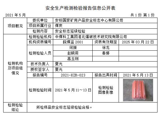 安全生產(chǎn)檢測檢驗報告信息公開表(2021年5月)