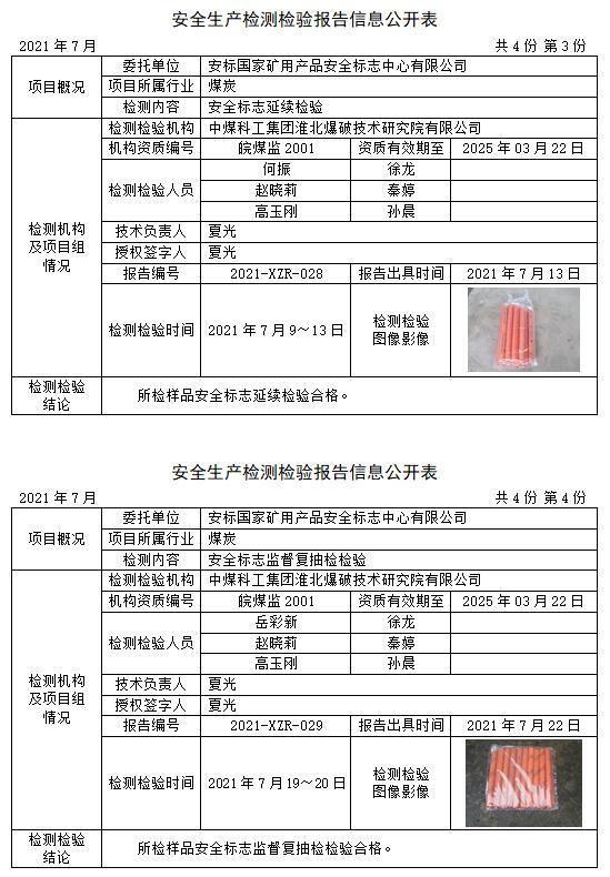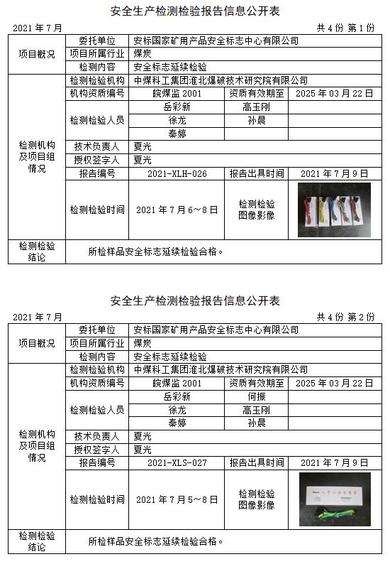 安全生產(chǎn)檢測(cè)檢驗(yàn)報(bào)告信息公開表(2021年7月)
