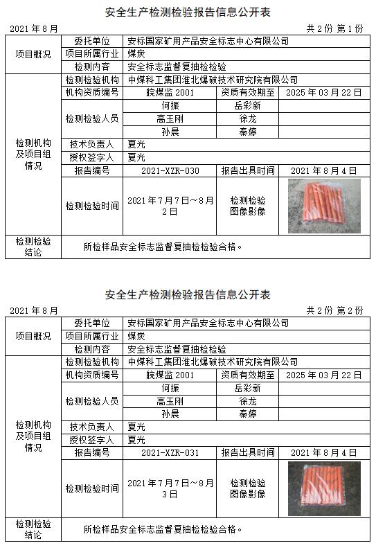 安全生產(chǎn)檢測檢驗(yàn)報(bào)告信息公開表(2021年8月)