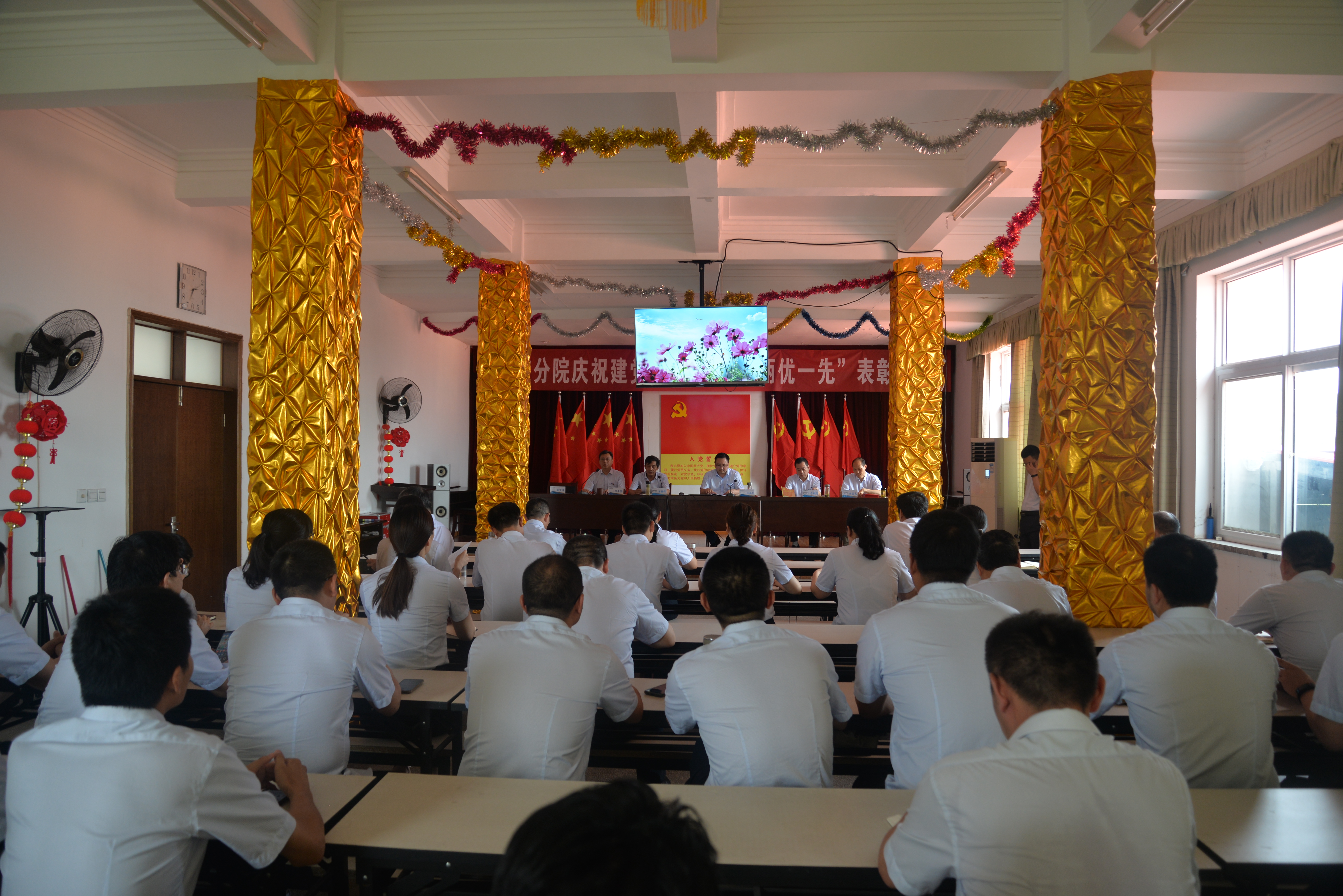 大會在激昂的《國歌》聲中隆重開幕。于魏清副院長宣讀了分院黨委《關于表彰先進黨支部、優(yōu)秀共產黨員、優(yōu)秀黨務工作者和共產黨員示范崗的決定》,與會領導向獲得“兩優(yōu)一先”等光榮稱號的集體與個人頒發(fā)了榮譽證書并合影留念;在陳金華書記帶領下,預備黨員進行了莊嚴的入黨宣誓,全體黨員重溫了入黨誓詞;潘先峰同志代表優(yōu)秀共產黨員做了激情澎湃、催人奮進的發(fā)言。