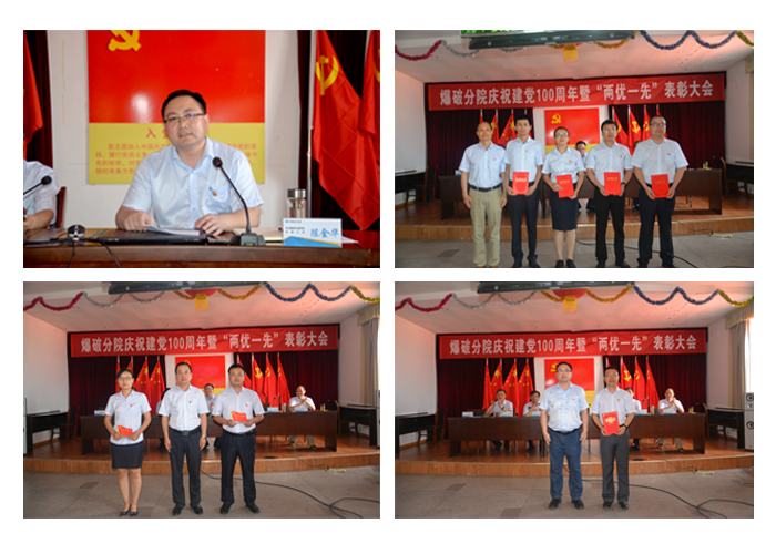 為隆重慶祝中國共產黨成立100周年,扎實推進黨史學習教育,7月1日,爆破分院召開慶祝建黨100周年暨“兩優(yōu)一先”表彰大會,開展了黨委書記講黨課、紅歌比賽等活動。大會由黨委副書記王繼峰主持,全體黨員統(tǒng)一著裝、精神飽滿的參加了會議。