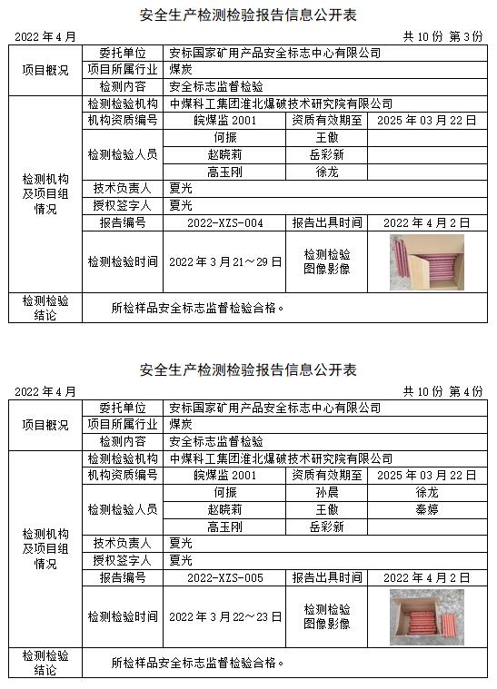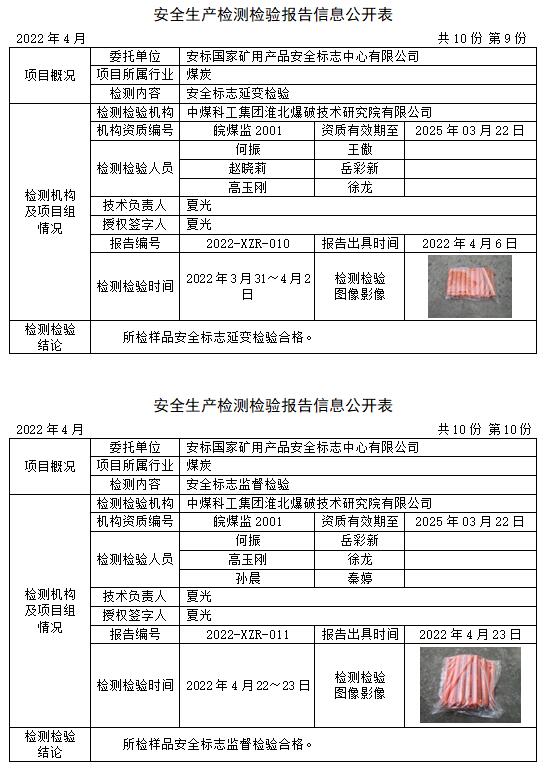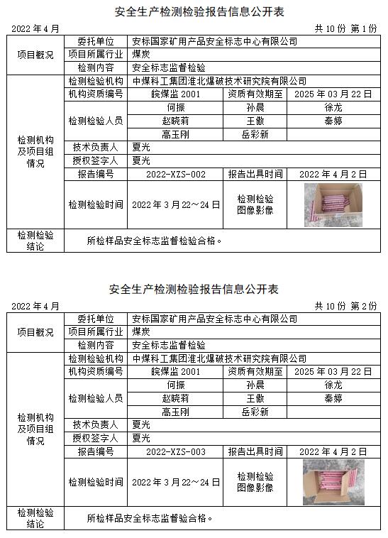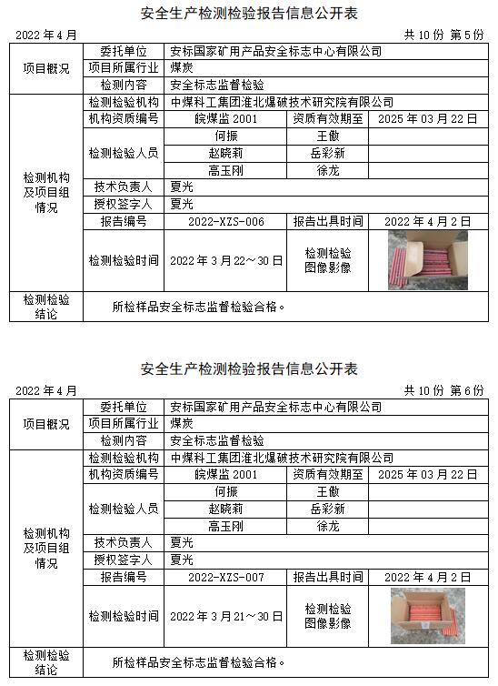 安全生產(chǎn)檢測(cè)檢驗(yàn)報(bào)告信息公開(kāi)表(2022年4月)