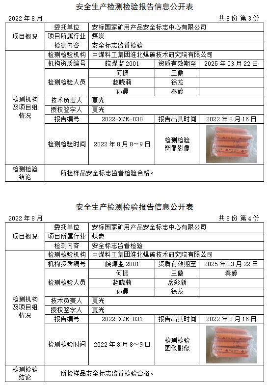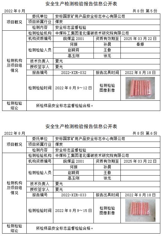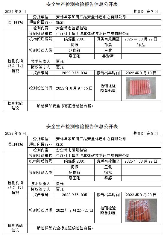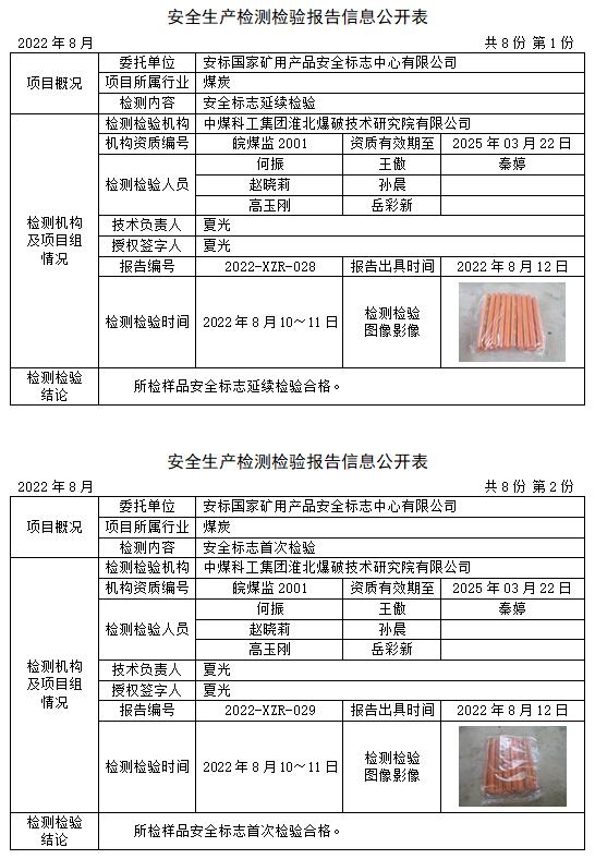 安全生產(chǎn)檢測(cè)檢驗(yàn)報(bào)告信息公開(kāi)表(2022年8月)