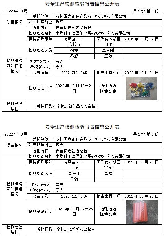 安全生產(chǎn)檢測檢驗(yàn)報(bào)告信息公開表(2022年10月)