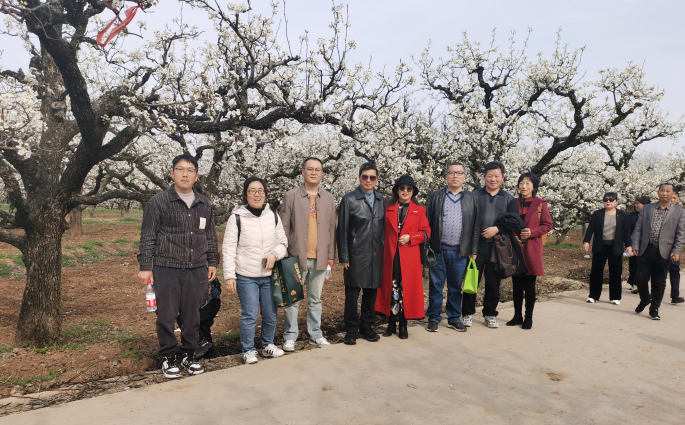 三月春風來,梨花滿園香。下午二時許,大家驅車前往宿州市清水村梨花園,臨近園區(qū)遠遠望去,百畝梨園如一張墨綠和銀白色相融的大“底盤”,橫縱交錯的道路如條條綢帶穿梭,潔白梨花輟滿枝間;大家在工作之余親近大自然,都十分高興,在和煦的春風里,大家興致盎然地觀賞梨花,合影留念,微風吹來絲絲花香,藍天白云充滿歡聲笑語,讓人流連忘返。