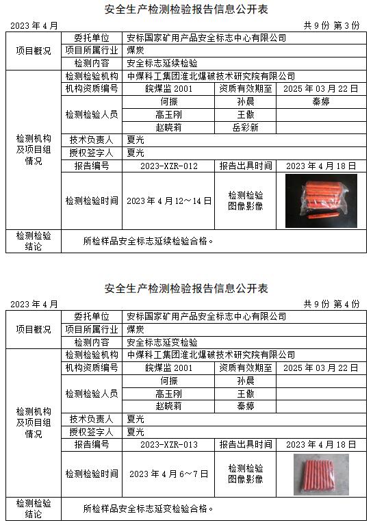 安全生產(chǎn)檢測(cè)檢驗(yàn)報(bào)告信息公開(kāi)表(2023年4月)