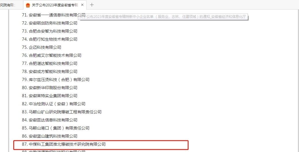 近日,在安徽省經(jīng)濟(jì)和信息化廳網(wǎng)站公布的2023年安徽省專精特新中小企業(yè)名單中,爆破分院成功入選。根據(jù)《安徽省專精特新中小企業(yè)倍增行動(dòng)方案》(皖政辦〔2022〕2號)和2023年省政府重點(diǎn)工作安排,本次爆破分院須同時(shí)申報(bào)2023年省級專精特新中小企業(yè)認(rèn)定和創(chuàng)新型中小企業(yè)評價(jià),時(shí)間緊,任務(wù)重,經(jīng)過精心準(zhǔn)備,在多部門協(xié)同努力下,完成了線上資料填報(bào)和線下資料送審,通過逐級審核推薦、第三方審核、社會公示等程序,最終獲評為安徽省創(chuàng)新型中小企業(yè)和安徽省專精特新中小企業(yè)。