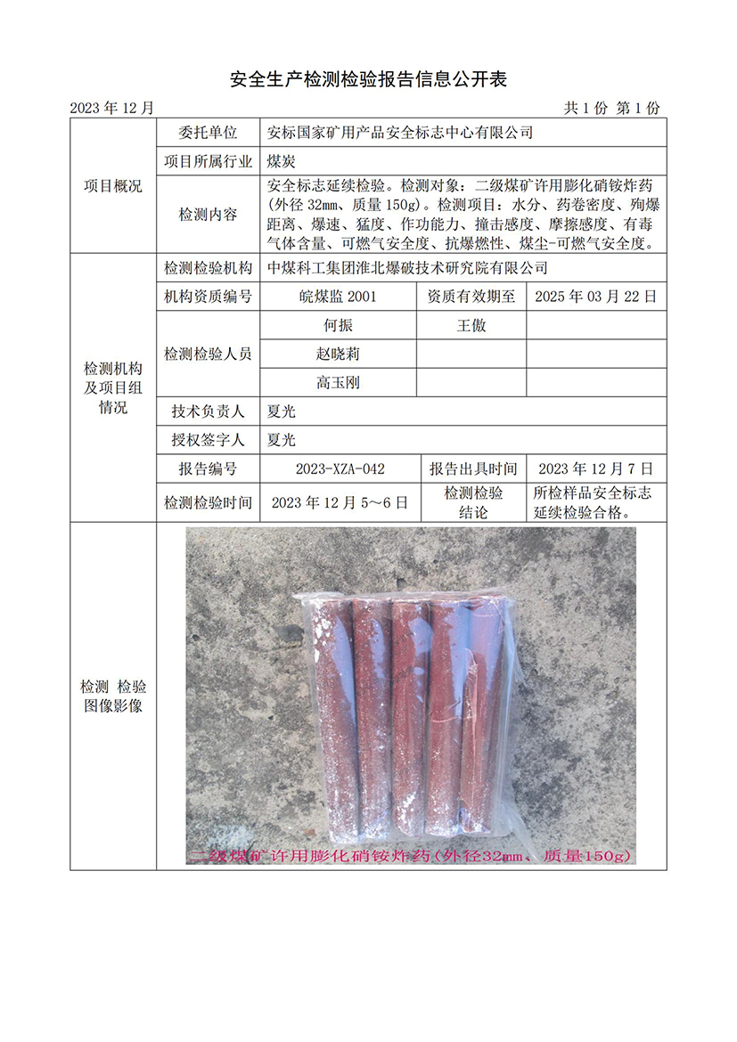 安全生產(chǎn)檢測(cè)檢驗(yàn)報(bào)告信息公開表(2023年12月份)