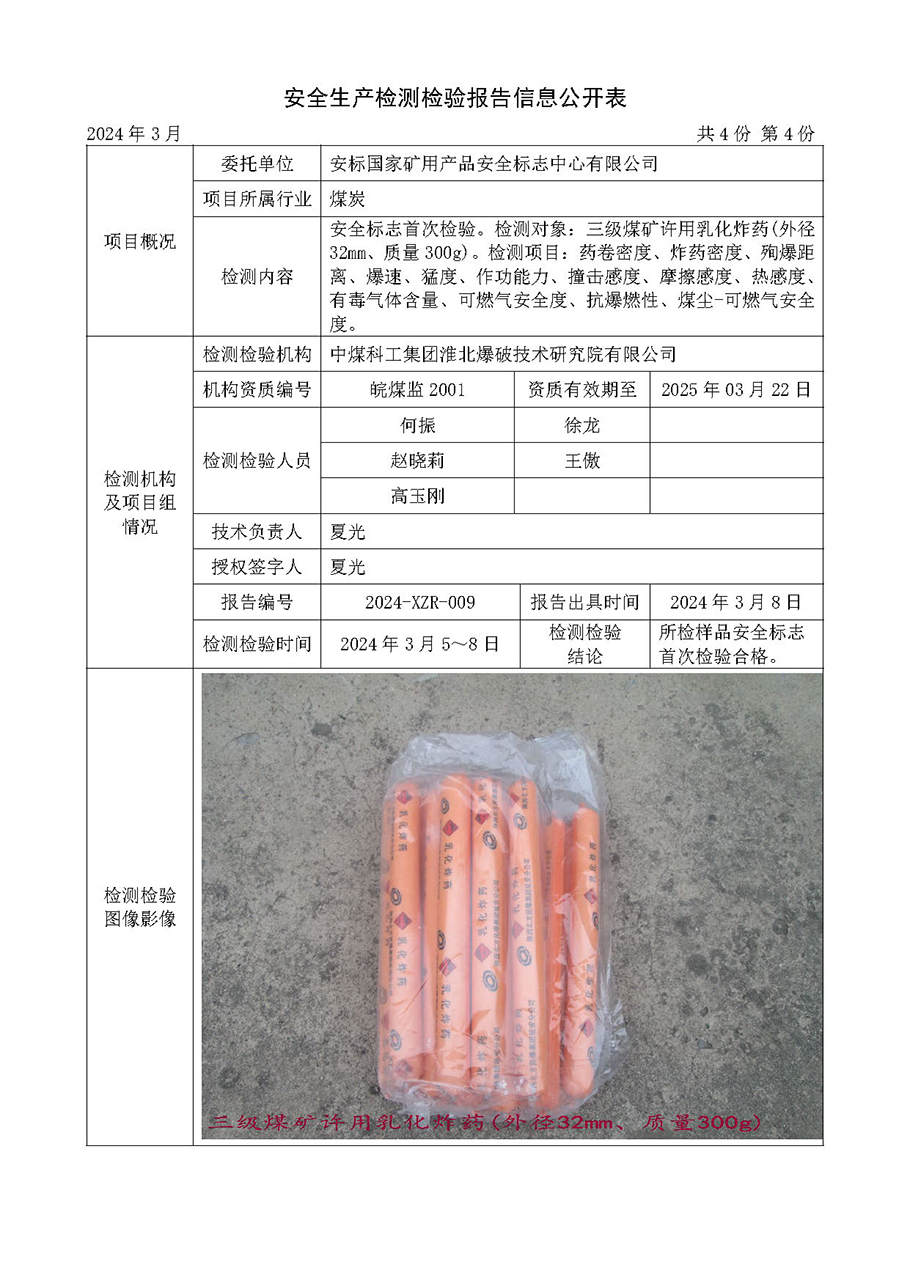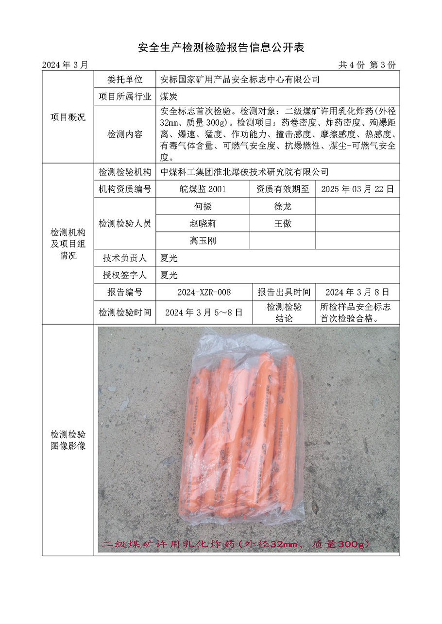 安全生產(chǎn)檢測檢驗報告信息公開表(2024年3月份)