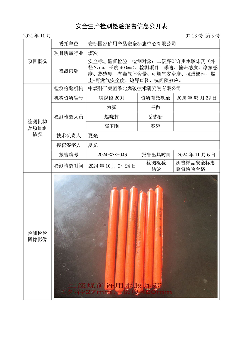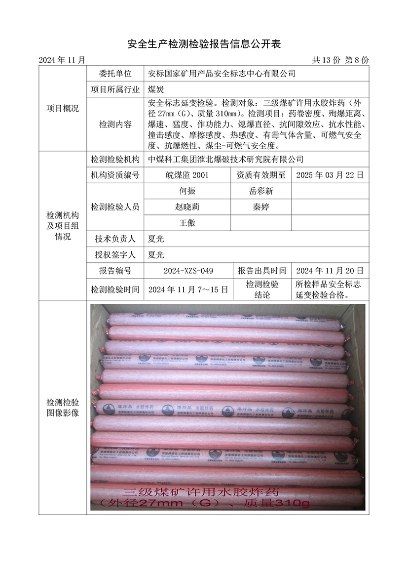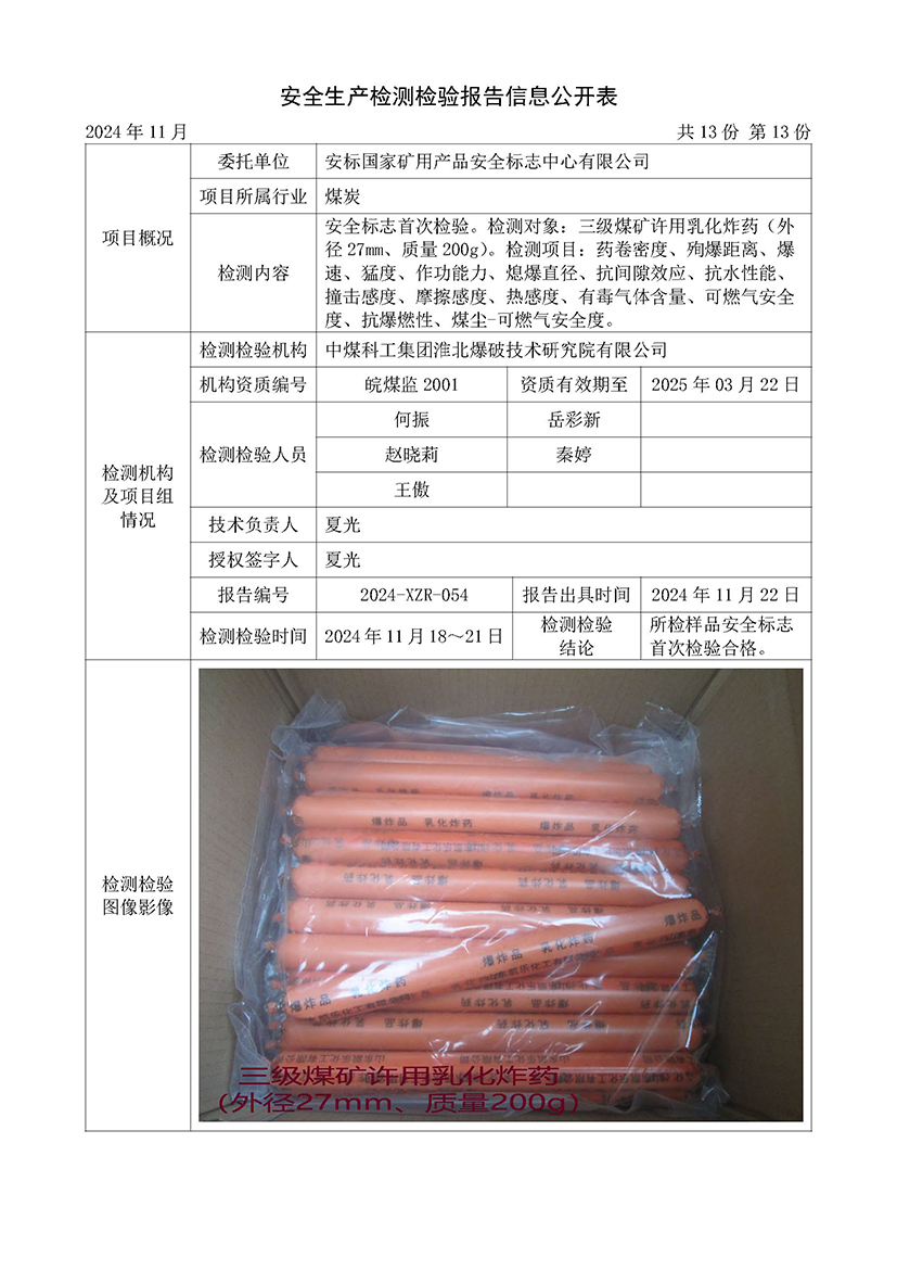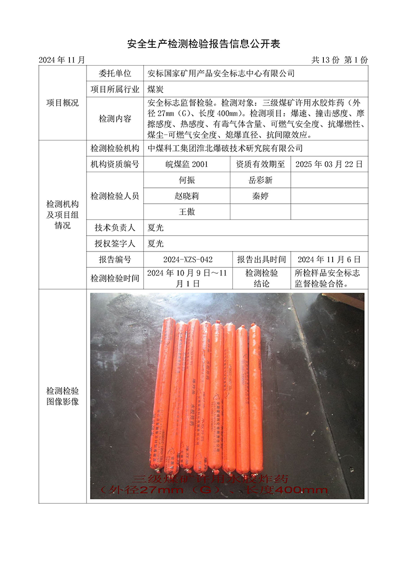 安全生產(chǎn)檢測檢驗(yàn)報(bào)告信息公開表(2024年11月份)