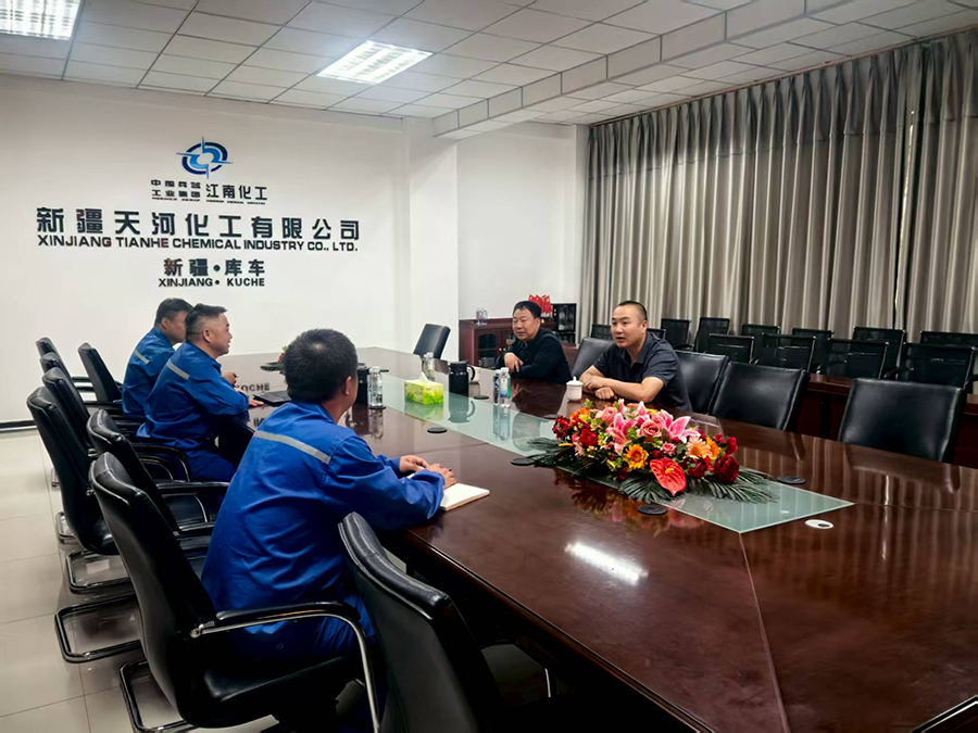 7月13日,李勇副院長(zhǎng)一行到達(dá)新疆天河化工有限公司庫(kù)車(chē)分公司。庫(kù)車(chē)分公司總經(jīng)理?xiàng)钚∷?/span>介紹了公司的發(fā)展戰(zhàn)略、產(chǎn)業(yè)布局、生產(chǎn)經(jīng)營(yíng)等情況,雙方圍繞項(xiàng)目合作、市場(chǎng)變化及行業(yè)發(fā)展趨勢(shì)等展開(kāi)深入探討,雙方一致表示,將充分發(fā)揮各自優(yōu)勢(shì),探索更多合作機(jī)會(huì),共同開(kāi)創(chuàng)互利共贏、協(xié)作發(fā)展的新局面。