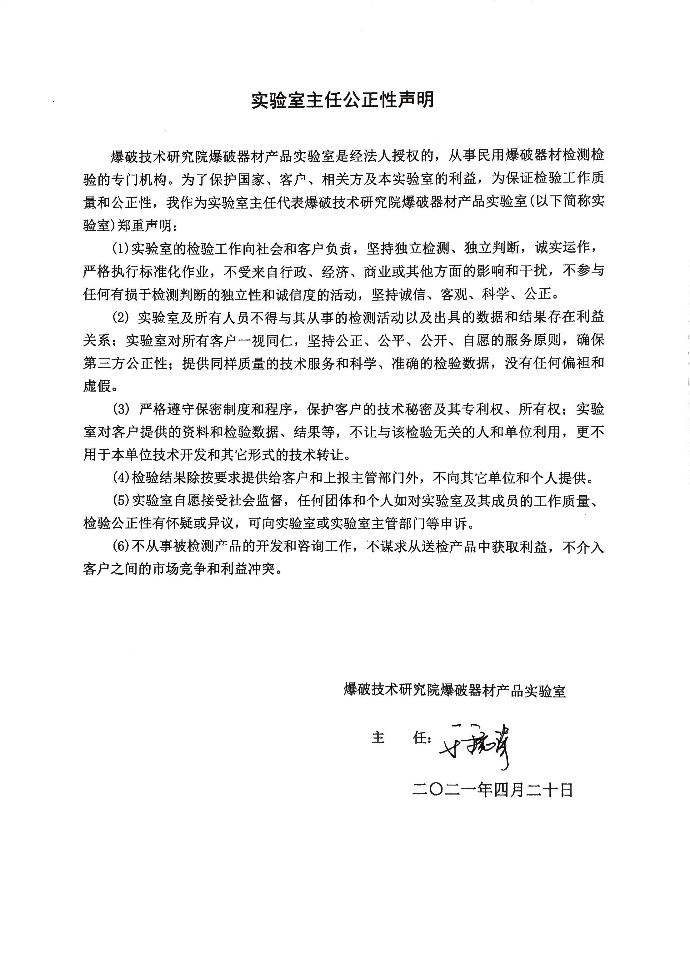 檢驗(yàn)中心最高管理者自我聲明: